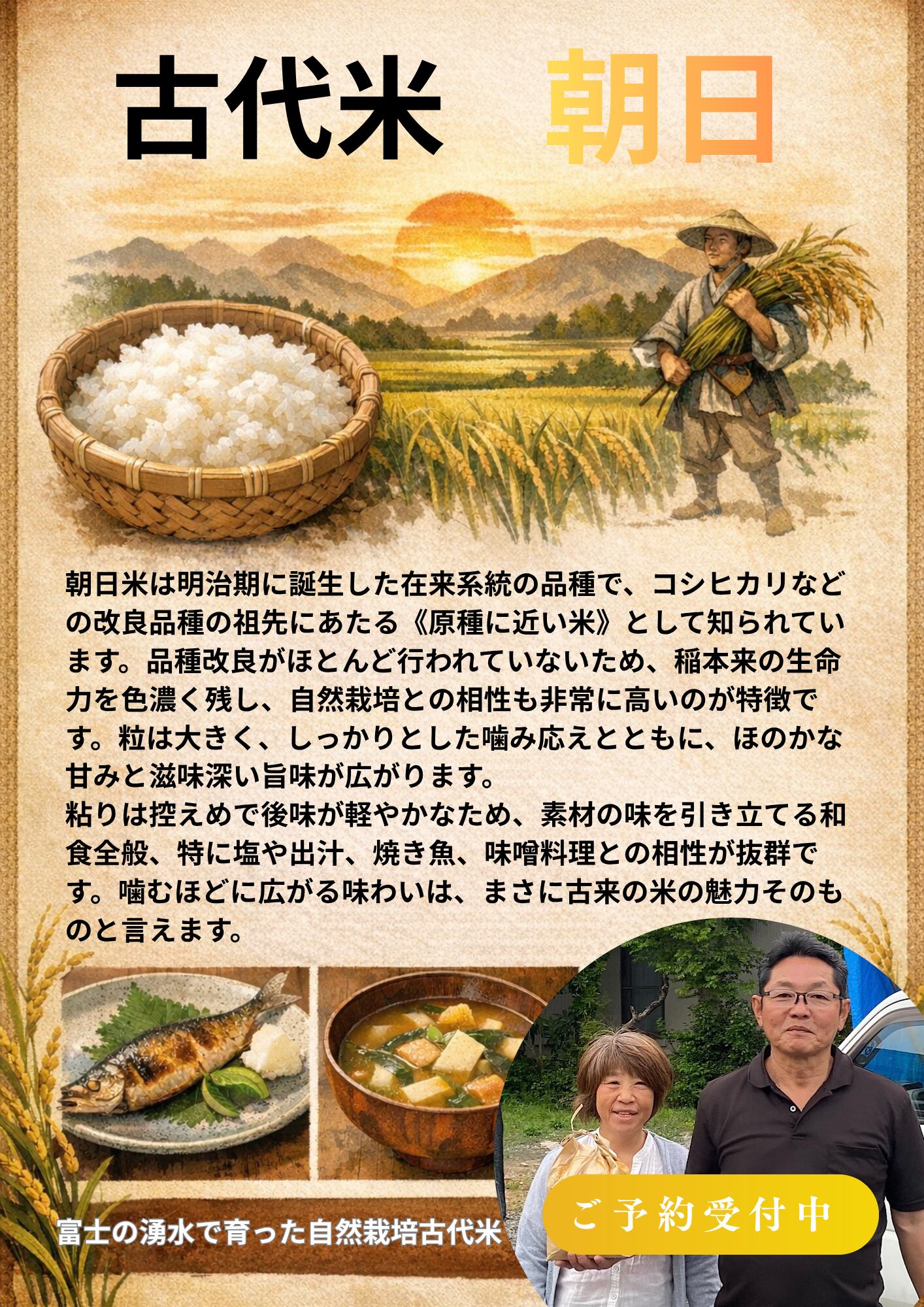 【早割10%OFF~4/19】2026年度 古代米朝日:白米【半年間/月10kg】市川さんの農薬・肥料不使用:白米【予約販売・送料無料】